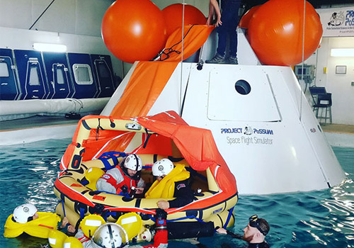 One of our R&D clients, IIAS (International Institute for Astronautical Sciences), uses our facility to educate the next generation of astronautical professionals. The curriculum focuses on spacecraft landing and post-landing phases, use of IVA (Intra-Vehicular Activity) spacesuits, and use of EVAs (Extravehicular Activity) in an underwater analog environment. Practical exercises include a full-scale mockup including NASA’s Orion spacecraft, ISS (International Space Station) Quest Airlock, and a parachute-drop apparatus to simulate various ejection and parachute entry training procedures into water.